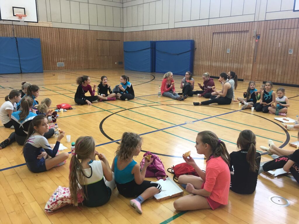 Nach der Turnstunde machten wir es uns mit Essen und Trinken in der Halle gemütlich. Es gab wieder leckere Pizza von Peppinos Pizzaservice.