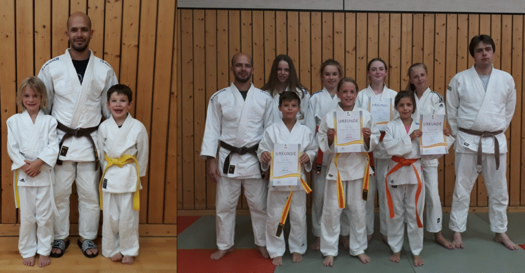 Annie Müller erreichte den weiß-gelben Gürtel, Noel Schwämmlein und Lynn Granert den gelben Gürtel. Regina Schramm, Tim Hopf und Paula Lang dürfen nun den gelb-orangen Gurt tragen, Anna Fischer, Anna Buchholz und Johanna Zipfel den orangen Gürtel.