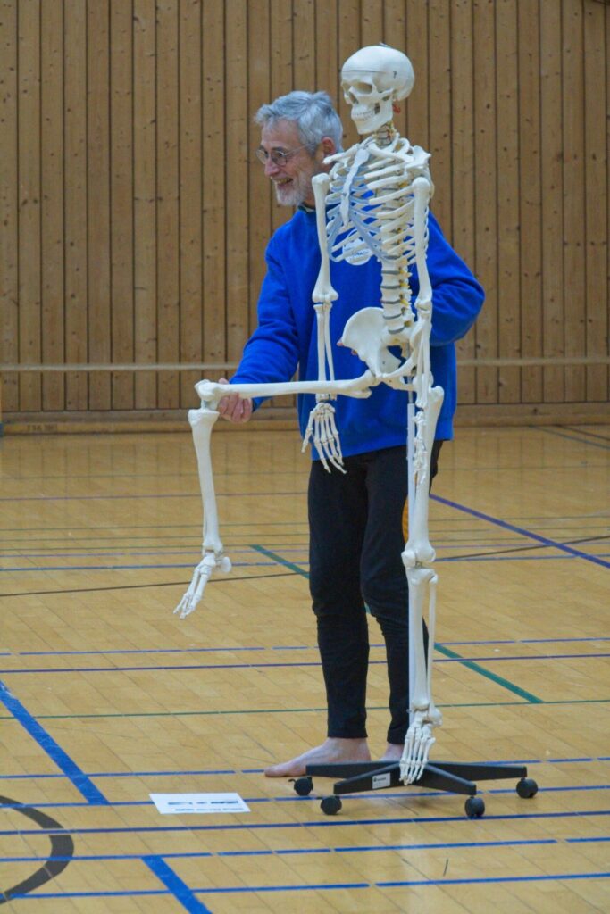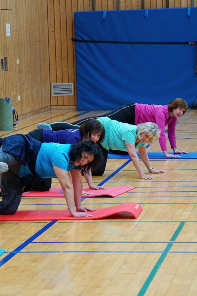 Aber wie sehen solche Übungen für bestimmte Gelenke (d.h. für bestimmte Schmerzen) eigentlich aus ? Die Antwort auf diese Frage wird im Kurs geliefert. Die von den TeilnehmerInnen in den Kurs „mitgebrachten“ Schmerzen bestimmen die Auswahl der Übungen, die im Kurs unterrichtet und den TeilnehmerInnen als Hausaufgabe mitgegeben werden. Jede Teilnehmerin übt zuhause die Übungen speziell gegen ihre Schmerzen (die Männer bleiben nicht von ihren Übungen verschont !).
