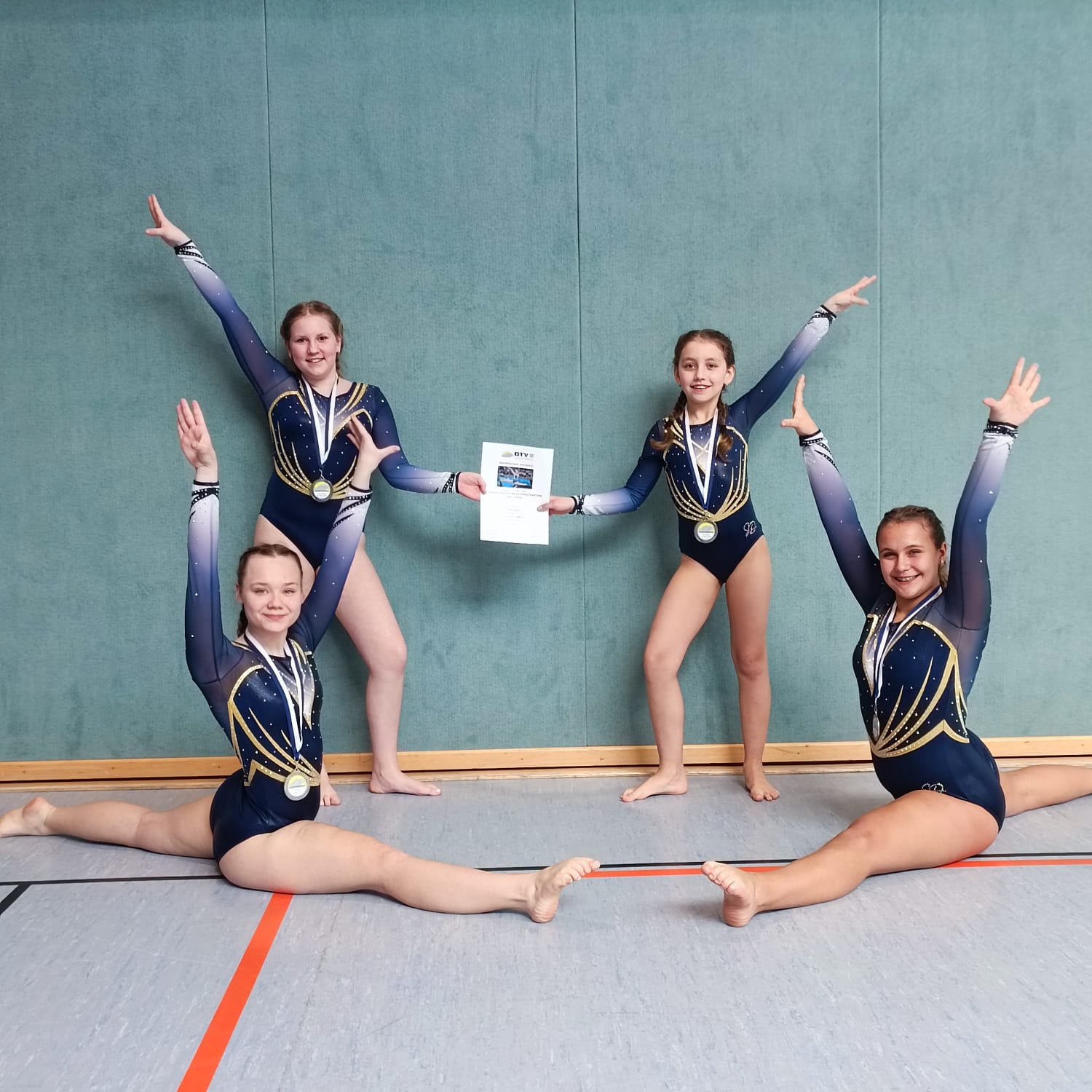 Leider verletzte sich Livia Silbermann am Boden, so dass ihre Mannschaft am letzten Gerät, den Sprungtisch, nur zu dritt antreten konnte. Dies wirkte sich natürlich auf die Gesamtplatzierung der Mannschaft aus, da ja eine Sprungwertung fehlte. Wir wünschen Livia gute Besserung und hoffen, dass sie beim nächsten Wettkampf wieder mit starten kann.